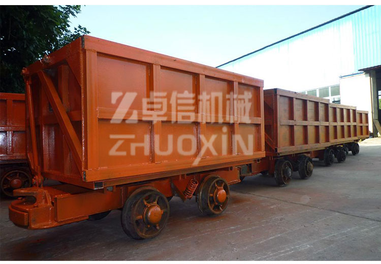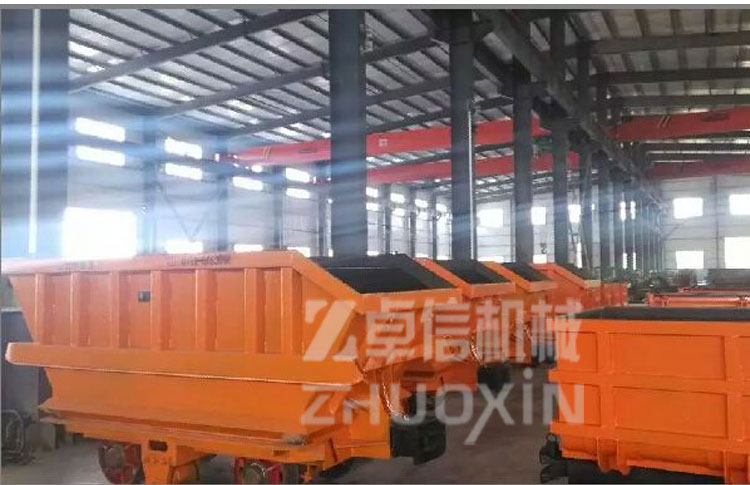 - 側(cè)卸式礦車(chē)主要適用于冶金、礦山巷道、煤礦、鐵路、公路遂道、水下涵洞、引水洞、導(dǎo)流洞、涵洞等隧道井巷工程掘進(jìn)、施工、配套簡(jiǎn)單、高效率出渣運(yùn)輸設(shè)備。側(cè)卸式礦車(chē)由牽引車(chē)、絞車(chē)帶動(dòng),可與鑿巖鉆、立爪裝巖機(jī)和礦石溜開(kāi)閘門(mén)放料系統(tǒng)配套結(jié)合裝料,礦石塊度不超過(guò)600毫米,根據(jù)礦車(chē)的負(fù)載容積,裝料后經(jīng)牽引動(dòng)力引至(運(yùn)行速度不超過(guò)1m/秒)專用曲軌卸料器。當(dāng)車(chē)箱翻至水平成最大卸料角度時(shí),車(chē)門(mén)也開(kāi)到最大程序。這時(shí)礦車(chē)卸料以全部完成。返回時(shí),礦車(chē)通過(guò)曲軌門(mén)又自動(dòng)關(guān)閉到位。側(cè)卸式礦車(chē)、曲軌側(cè)卸式礦車(chē)、側(cè)翻式礦車(chē)容量有2立方、3立方、4立方、6立方、8立方的容積。側(cè)卸式礦車(chē)是一種高效、自卸載的運(yùn)輸設(shè)備,本身無(wú)能力,需與牽引機(jī)車(chē)或提升絞車(chē)配套使用。該車(chē)適用于礦山、隧道、工程建設(shè)等部門(mén)的坑道、室內(nèi)和露天軌道運(yùn)輸作業(yè),軌距為600mm、762mm、900mm三種,供用戶選擇。該車(chē)適宜裝載塊度在500mm以上的礦巖和砂土,裝載塊狀物料時(shí),其自由跌落高度應(yīng)小于1m(距車(chē)箱頂面)。側(cè)卸式礦車(chē)是代替最古老式的翻斗式礦車(chē)的礦山運(yùn)輸工具,它綜合了它的簡(jiǎn)單又方便,加大了它的貯存量,重量輕不笨重交靈活,簡(jiǎn)單也就毛病少,特點(diǎn)是能自卸料。由軌道牽引機(jī)車(chē)或卷?yè)P(yáng)機(jī)牽引行走,只能在卸載處做好的曲軌卸載平臺(tái)上,向設(shè)定的一面卸載。在車(chē)廂的一側(cè)用較軸與車(chē)架相連,另一側(cè)箱門(mén)上裝有卸載輥輪。卸載時(shí),當(dāng)輥輪沿曲軌斜坡過(guò)渡裝置在卸載曲軌上坡段的上行,致使車(chē)廂傾斜,活動(dòng)側(cè)門(mén)繞銷(xiāo)軸轉(zhuǎn)動(dòng)被拉開(kāi)而開(kāi)始卸載。當(dāng)輥輪沿傾斜卸載曲軌下坡運(yùn)行,車(chē)廂靠自生重量自動(dòng)下降復(fù)位到關(guān)閉側(cè)門(mén)。要注意的是當(dāng)側(cè)曲軌側(cè)卸式礦車(chē)從井底提升到卸載平臺(tái)時(shí),提升卷?yè)P(yáng)機(jī)要放慢速度上斜坡卸載平臺(tái),使其平穩(wěn)卸載。中煤集團(tuán)生產(chǎn)的單側(cè)曲軌側(cè)卸式礦車(chē)的優(yōu)點(diǎn)是比翻斗式礦車(chē)和固定式礦車(chē)容積更大,自動(dòng)平穩(wěn)卸載,由于這種卸載方式自身的特點(diǎn),曲軌卸載空間小,一般只要5.2米長(zhǎng),卸載傾角 仍可達(dá)到55度,有效的節(jié)省了井巷的開(kāi)拓空間和縮小了硐室尺寸。卸載距離短,煤倉(cāng)和車(chē)場(chǎng)的掘進(jìn)體積只有其它礦車(chē)的三分之一;由于卸載曲軌是對(duì)稱的,可實(shí)現(xiàn)側(cè)卸式礦車(chē)的雙向進(jìn)行卸載。側(cè)卸式礦車(chē)適用范圍側(cè)卸式礦車(chē)適用于井下或地面開(kāi)采的金屬礦山(或礦石性質(zhì)及開(kāi)采方式與其相類似的其他礦山)沿地下巷道及地面工作場(chǎng)地運(yùn)輸?shù)V石或其他物類。本礦車(chē)與其它底卸式礦車(chē)相比,具有運(yùn)行平穩(wěn),對(duì)電機(jī)車(chē)和牽引車(chē)沖擊力小,因此,可延長(zhǎng)其使用壽命。該車(chē)堅(jiān)固耐用,維修方便,可雙向卸載,卸載速度高等。側(cè)卸式礦車(chē)結(jié)構(gòu)組成側(cè)卸式礦車(chē)有以下部件組成:1.車(chē)箱、2.車(chē)底架、3.輪軸、4.卸載輪、5.支撐彈簧、6.緩沖橡膠彈簧與碰頭等組成。其中車(chē)箱與車(chē)底架的聯(lián)接采用鉸鏈形式,使礦車(chē)在過(guò)卸載站時(shí)能開(kāi)啟一定的角度以便礦石能順利卸下。31、車(chē)箱的前、后端板和側(cè)板均采用12mm厚的16Mn板焊接而成,在車(chē)箱四周外側(cè)采用槽形鋼板加固;翼板分別焊接在左、右側(cè)板上,上方用角鋼焊接成口字形,而且角鋼上方 和槽形鋼板相連,以便能使車(chē)箱在極端惡劣的工作環(huán)境下也不致于損壞。2、車(chē)底架。底板采用25mm厚的鋼板,在底板下面用角鋼和鋼板焊接,使底板足以能經(jīng)受住裝礦時(shí)礦石對(duì)底板的沖擊力。3、輪軸。輪軸由車(chē)軸、車(chē)輪和橡膠彈簧座組成。4、卸載輪。礦車(chē)卸礦時(shí)用,當(dāng)?shù)V車(chē)過(guò)卸載站時(shí),卸載輪便開(kāi)始工作,它沿曲軌滾動(dòng)從而使礦車(chē)底板打開(kāi),卸完礦石后再使底板閉合,重新回復(fù)到裝礦狀態(tài)。5、緩沖橡膠彈簧與碰頭。緩沖與碰頭安裝在礦車(chē)兩頭,主要由緩沖橡膠彈簧、碰頭、插銷(xiāo)和單環(huán)鏈組成。它能使礦車(chē)之間緩和并削減沖擊力,延長(zhǎng)車(chē)輛使用壽命。6、支撐彈簧。側(cè)卸式礦車(chē)相關(guān)參數(shù)容積:1.6m3軌距:600軸距:800C輪徑:350D牽引高度:320h額定牽引力:60KN卸載角:≥42°裝載量:4000KG外型尺寸:(長(zhǎng)*寬*高)2500*1200*1300。側(cè)卸式礦車(chē)售后服務(wù)及交付說(shuō)明1、側(cè)卸式礦車(chē)性價(jià)比說(shuō)明:同產(chǎn)品質(zhì)量條件下,我公司不以降低性能、更改產(chǎn)品零部件為代價(jià),給出最低最實(shí)在的價(jià)格。(可根據(jù)客戶要求進(jìn)行產(chǎn)品的生產(chǎn)配置)2、側(cè)卸式礦車(chē)交貨