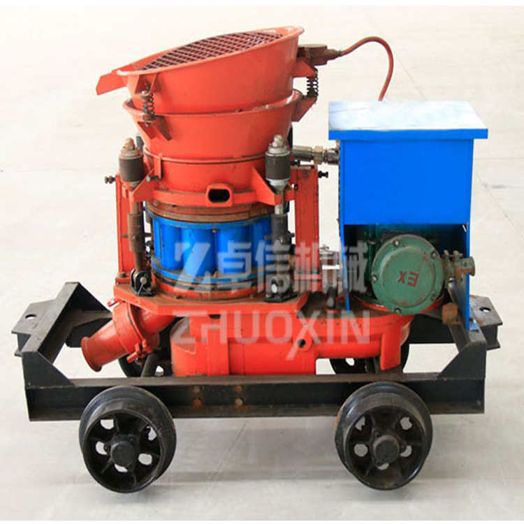 • PZ-5型潮法混凝土噴射機(jī)廣泛用于工程建筑、礦山、隧道、涵洞、地鐵、水電工程,地下工程及煤炭高沼礦井巷道噴射混凝土施工作業(yè):PZ-5B礦用噴漿機(jī)各種類(lèi)工業(yè)爐窯,爐襯的耐火材料噴涂成型或修補(bǔ):各種護(hù)坡綠化施工中,土壤的輸送和噴射。PZ-5型潮法混凝土噴射機(jī)即可用于潮噴,也可以礦用噴漿機(jī)用于干噴及個(gè)類(lèi)纖維噴射作業(yè)。PZ-5型潮法混凝土噴射機(jī)其主要特點(diǎn)和優(yōu)勢(shì)在于:直通轉(zhuǎn)子式不粘結(jié)料腔,出料通暢,高效省時(shí):四點(diǎn)彈性補(bǔ)償壓緊,密封效果好,機(jī)旁粉塵少,易損件壽命長(zhǎng):礦用噴漿機(jī)采用低壓高速渦旋氣流輸送,克服物料輸送中粘結(jié),堵管和脈沖離折等問(wèn)題,料流均勻,連續(xù)穩(wěn)定:新型噴頭,出料彎頭裝置,改善噴敷效果,PZ-5型潮法混凝土噴射機(jī)回彈少,噴層質(zhì)量高。PZ-5型潮法混凝土噴射機(jī)機(jī)器底盤(pán)可以裝配成輪胎式、滑撬式和各種軌距的軌輪式。