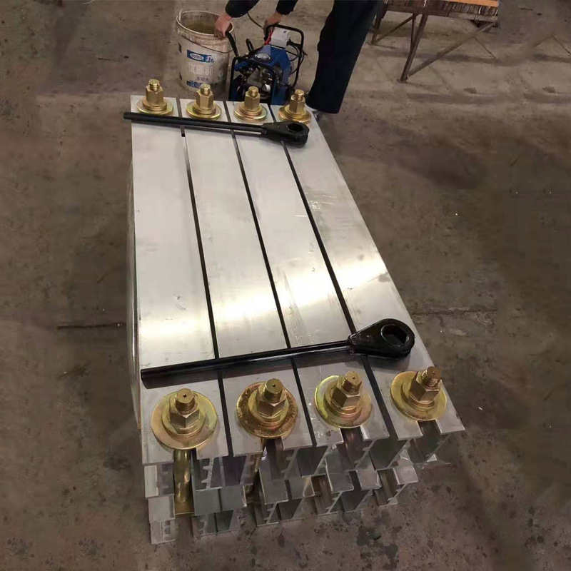 - 電熱式膠帶硫化機,是輸送機械膠帶接頭硫化膠接的專用設(shè)備。 該機采用輕質(zhì)鋁合金材料制造,體積小,單件重量輕,普通三相電源供電,熱板溫度均勻,水壓系統(tǒng)供給(1.0~2.0mpa)均勻壓力,配有輕型全自動電控箱,電控箱與主機的連接由一體化插件及多芯電纜完成,操作方便,工作可靠。同時又具有升溫快,溫度均勻,熱效率高等特點,是一種輸送機械橡膠帶接頭的理想膠接設(shè)備。膠帶接頭的質(zhì)量,直接影響到膠帶的工作效力、使用壽命,尤其是目前長距離、高強度運輸帶更為重要,故DSLJ型電熱式膠帶硫化機是目前膠帶運輸機械中不可缺少的輔助設(shè)備。用途:該產(chǎn)品使用廣泛,可適用于冶金、化工、金屬礦山、電廠、港口、碼頭等現(xiàn)場膠接輸送機的運輸接頭。在本機提供的技術(shù)參數(shù)和執(zhí)行正確的硫化膠帶接力強度的90%以上,不僅接頭光滑,幾乎與原帶無異,而且能減少對滾筒的磨損和延長輸送機及橡膠運輸帶的使用壽命。電熱式膠帶硫化機技術(shù)參數(shù)1、硫化壓力:1.5mpa;2、硫化溫度:145℃;3、硫化板面溫差:±3℃;4、升溫時間(常溫到145℃)不大于25min;5、電源電壓:380V、660V,50Hz;6、電控箱輸出功率:36Kw;7、溫度調(diào)節(jié)范圍:室溫~200℃;8、計時調(diào)節(jié)范圍:0~59min;9、上下加熱板加壓:0.8mpa后其縫隙,不大于0.5min;說明:1.機器最大規(guī)格:從650MM-4200MM;2.電壓380V 660V 480V 440V 415V 400V 或220V;3.快速冷卻時:5分鐘(從145度降到70度以下)4.硫化溫度:0-200℃任意調(diào)節(jié);5.升溫時間(常溫到硫化溫度)不大于50min; 硫化壓力最高1.8Mpa(具體以用戶規(guī)格和出廠標示為準);6.硫化保溫時間按膠帶厚度調(diào)節(jié);7.硫化膠接運輸膠帶接頭長度可按需要單臺或多臺任意拼接;8.訂貨時請認準產(chǎn)品型號規(guī)格、并注明運輸膠帶的寬度,拉力強度及所需硫化膠接的公斤壓力;9.有電動泵用戶可根據(jù)需要另訂。