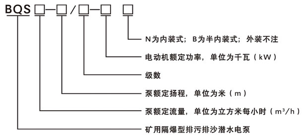 BQS(W)礦用隔爆型排污排沙潛水電泵產(chǎn)品型號(hào)介紹: