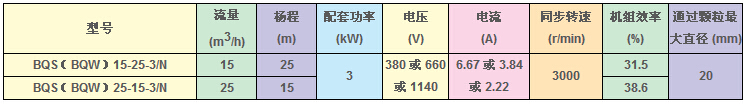 BQS(W)2.2KW的礦用隔爆型排污排沙潛水電泵技術(shù)參數(shù):