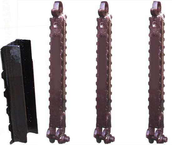 雙楔頂梁是一種鉸接式的頂梁,它可與各種類型單體金屬支柱配合組成金屬支架,供煤礦在水平及緩傾斜回采工作面支護(hù)的一種高強(qiáng)度頂梁。雙楔頂梁由于這種頂梁能懸臂支護(hù)工作面煤壁前邊的運(yùn)輸機(jī)道上面的頂板,使煤壁與支柱間有較大的無(wú)支護(hù)空間。故為采用新型采煤機(jī)械和可彎曲運(yùn)輸機(jī),實(shí)現(xiàn)采煤一般機(jī)械化提供了條件,是高檔普采和新高檔采技術(shù)必要配套設(shè)備.